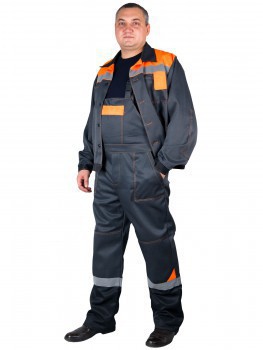 Описание товара: Костюм состоит из куртки и полукомбинезона. Куртка прямого силуэта, укороченная с центральной застежкой на пуговицы, с притачным поясом на резинке. Отложной воротник. Кокетки выполнены из отделочной ткани. Светоотражающая полоса 50 мм по линии кокетки на полочках и спинке. На куртке имеются два нагрудных и два боковых кармана. Полукомбинезон с регулируемыми бретелями с застежкой на фастексы. По талии спинки, резинка. Имеются боковые карманы. Швы с контрастной отстрочкой. В области локтей и коленей усиления.