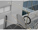 Изделие «Антиприсадная струна» является эффективным средством отпугивания птиц (голубей, ворон, галок и пр.). Создает для большинства птиц непреодолимые препятствия для посадки. Устанавливается в местах дневного и ночного отдыха и наблюдения птиц, местах устройства гнезд. Представляет собой стальной оцинкованный трос диаметром до 1 мм. Растягивается на одинарных кронштейнах-стойках высотой 110 мм - в одну линию и на трехстоечных кронштейнах-гребенках - в три линии с шагом струн 110 мм. Кронштейны-гребенки выполнены в форме буквы W c одной точкой фиксации. Имеют два исполнения: прямые - для крепления к вертикальным поверхностям (например, поребрикам оцинкованной жести) без нарушения целостности кровельного покрытия; угловые - для крепления к горизонтальной поверхности. Для установки на угловых переходах элементов зданий и сооружений в целях сохранения шага струн применяются кронштейны с углом разворота стоек 65º.