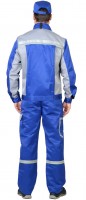 Описание товара: куртка прямого силуэта, короткая, воротник стойка, центральная застежка на однозамковую тесьму - "молния", с прорезными бочками, с верхними и нижними карманами в швах, с притачным поясом, регулирующимся по ширине при помощи хлястиков и кнопок. Рукава с манжетами на кнопках. Полукомбинезон с застежкой гульфика и застежкой в правом боковом шве на три петли и пуговицы, верхним накладным карманом и нижними внутренними боковыми карманами, с наколенниками, с накладным карманом на левом боковом шве с клапаном на кнопке с патой, с двумя задними карманами для инструментов, по спинке вставлена резинка.