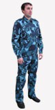 Описание товара: куртка с центральной застежкой на молнию, с притачным поясом, собранным по бокам на резинку, имеет прорезные боковые и накладные нагрудные карманы с планкой и фигурными клапанами. Рукава одношовные, длинные. Низ рукавов со шлицей, с манжетой. Куртка имеет мягкие погоны по плечевым швам, на которые одеты фальшпогоны. Брюки прямые с притачным поясом, имеют два боковых и один задний карманы. Ширина брюк по талии регулируется с помощью патиков, с застёжкой на 1 петлю и 2 пуговицы. Передние половинки брюк с застроченными стрелками. Застежка на молнию. Шлевки под ремень.